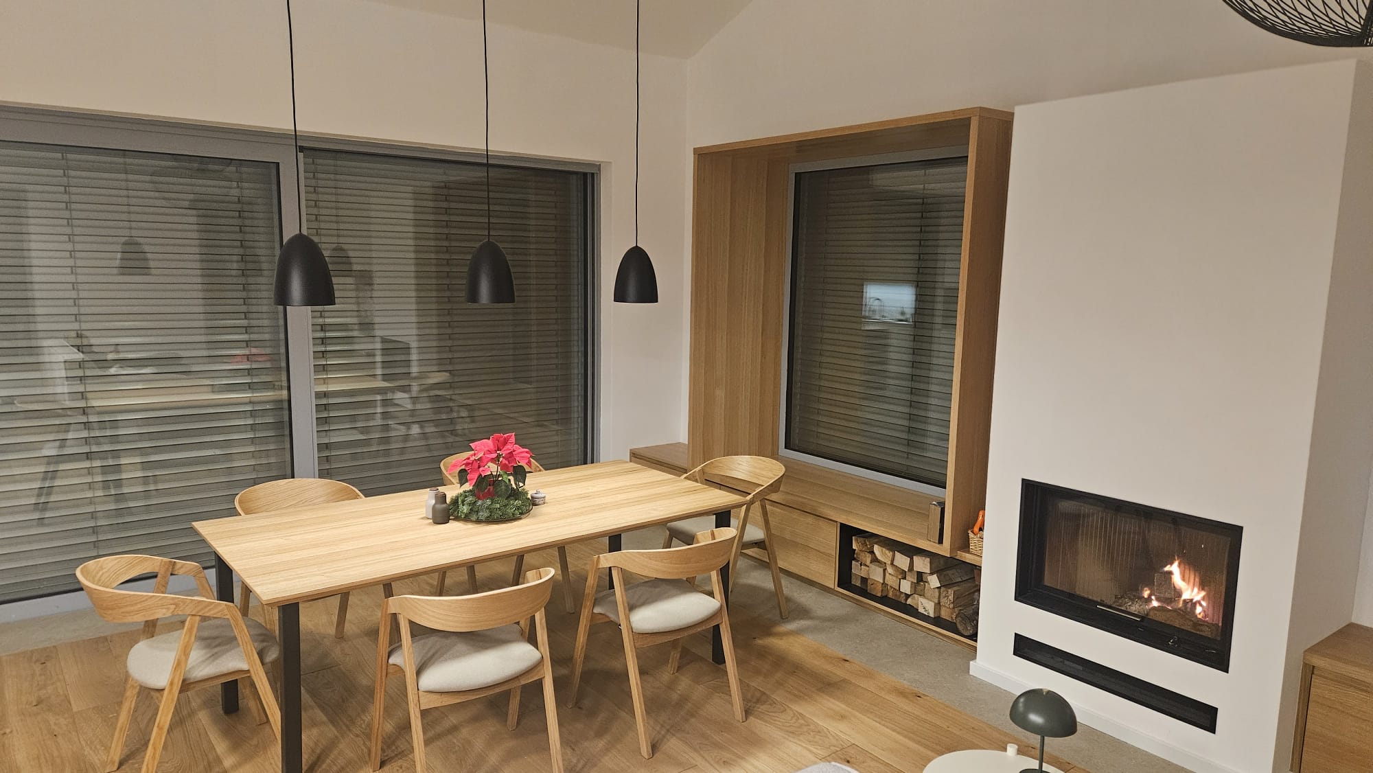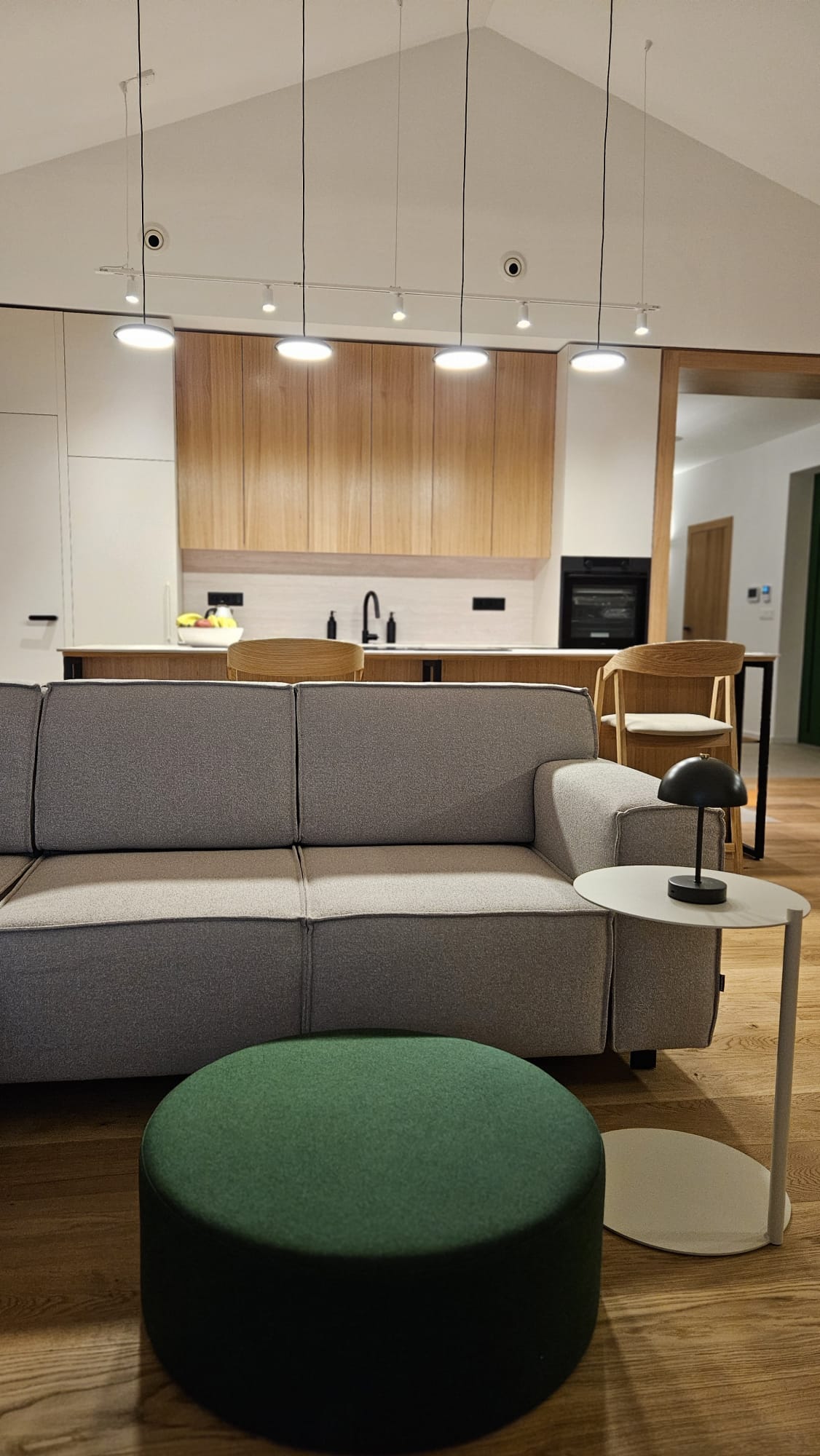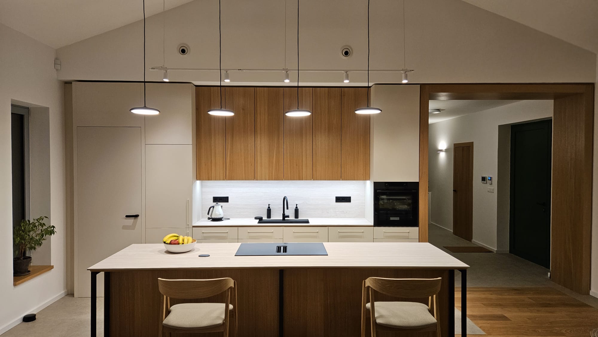 V roce 2025 jsme realizovali kompletní vybavení nábytkem domu v Českém Brodě. Kombinace lamina a lakované dýhy.